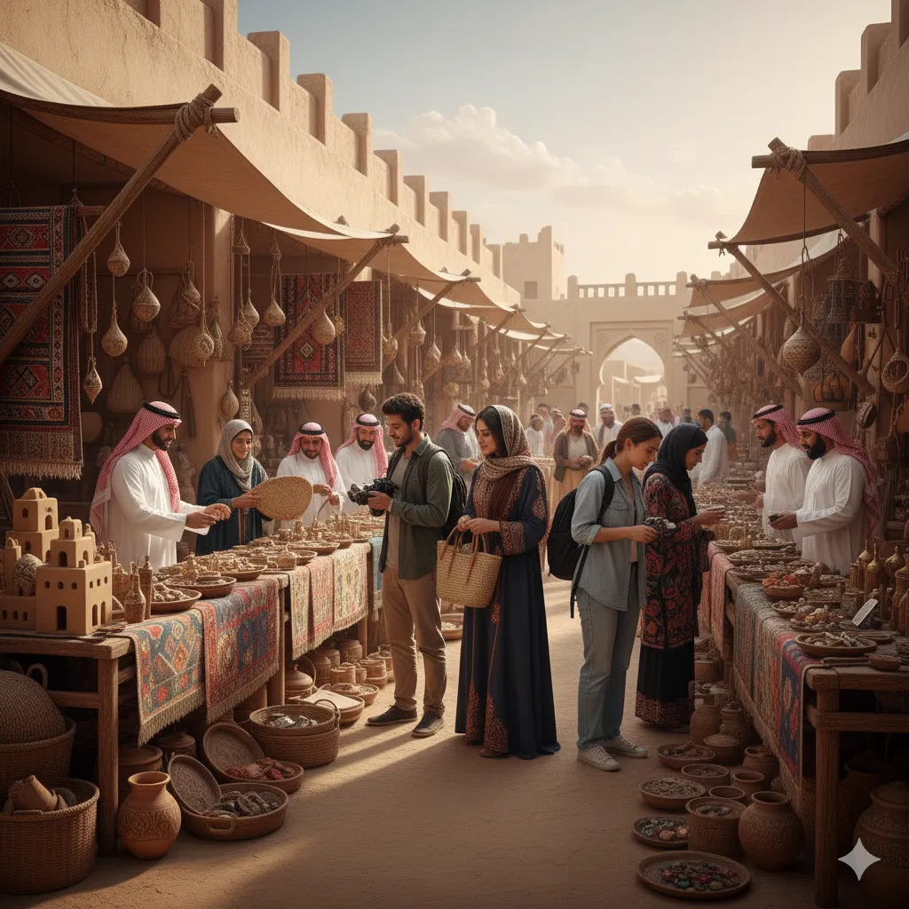 • الأسواق الشعبية والمعارض الحرفية مثل سوق عكاظ ومهرجان الجنادرية.